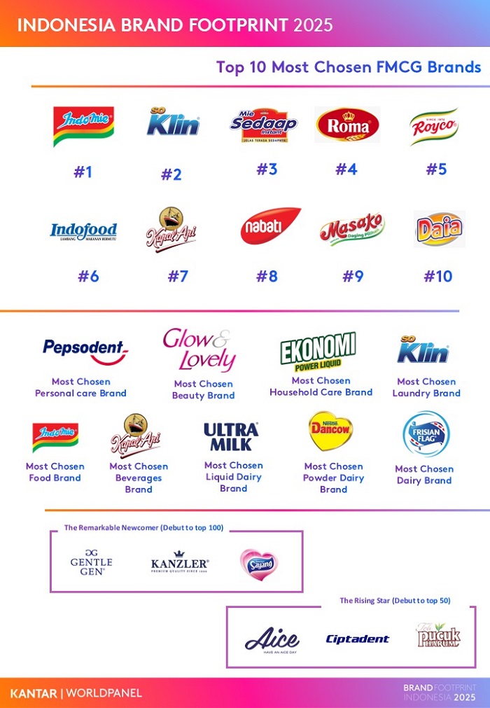 JAKARTA – Di tengah perubahan perilaku belanja masyarakat Indonesia, Kantar Worldpanel Indonesia kembali menghadirkan laporan tahunan Brand Footprint 2025, yang mengukur brand FMCG yang paling banyak dipilih oleh rumah tangga di Indonesia.